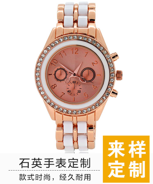 廣州手表定制廠家供應(yīng)玫瑰金鑲鉆女士手表