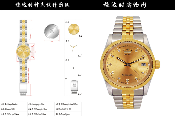 河北邢臺的李先生是在網(wǎng)上與穩(wěn)達時結(jié)緣的。李先生自己設計了一款個性手表需要來圖生產(chǎn),但是擔心手表代工廠做出來的成品與他的設計不一樣,穩(wěn)達時小風建議可以先進行打樣生產(chǎn),樣板滿意后再進行生產(chǎn)。在充滿忐忑的半個月后,李先生收到了手表代工廠寄過來的樣板,還真是一模一樣,樣板和設計圖紙1比1打樣,于是立即下單開始批量生產(chǎn)。